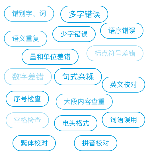 根据《图书质量管理规定》,差错率不超过万分之一的图书,其编校质量属合格。出版社实行严格的“三审三校”制度,一本20万字左右的图书,用传统校对方式初审便需要数天,人工审核往往面临着很大压力,《图书编校质量差错判定和计算方法》所列举的文字、图片差错的类型便多达20项,人工审核容易出现视觉疲劳,导致一些基础错误被漏判,影响书稿质量。