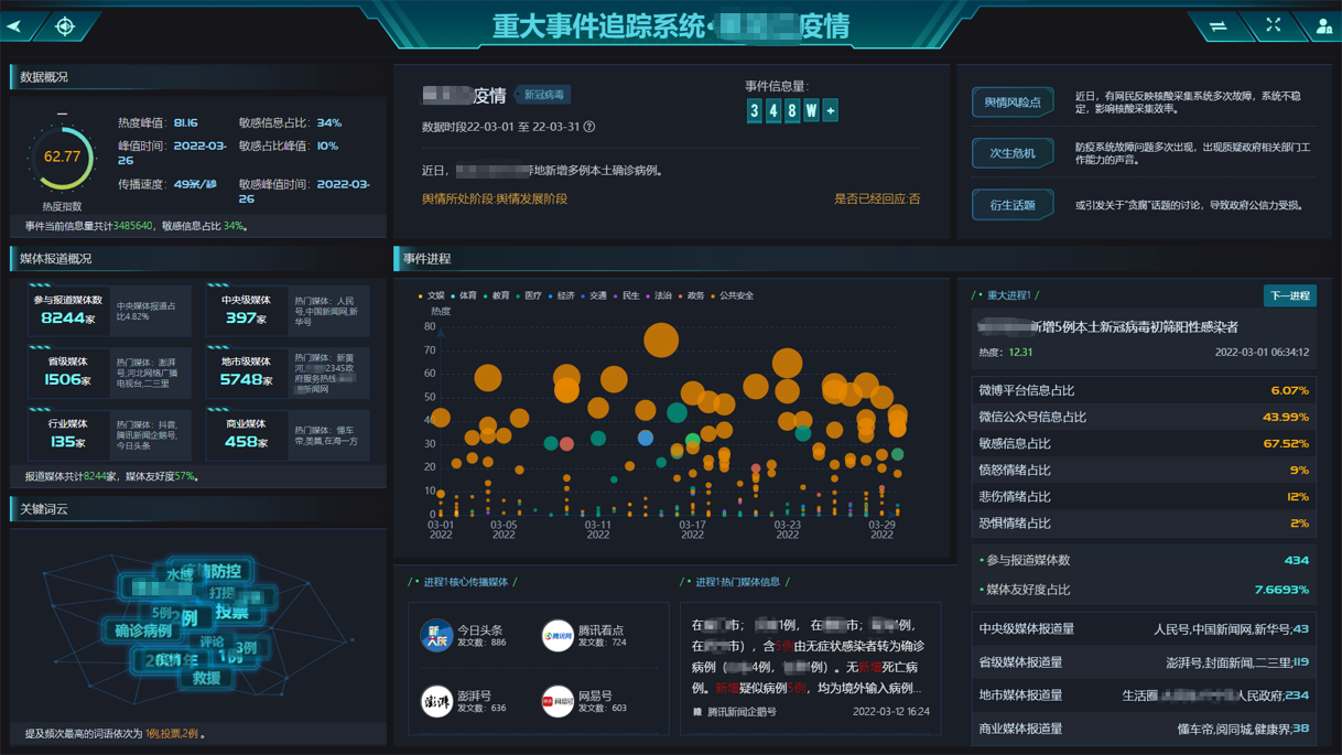 近期,国内多地暴发局部疫情,防控形势严峻复杂。为实时掌握疫情公开大数据、感知涉疫舆论动态,上海蜜度信息技术有限公司旗下产品“城感通(城市治理及公共决策风险防范感知系统)”推出“疫情态势感知专题系统”,通过数据智能化应用助力相关部门打好疫情防控阻击战。